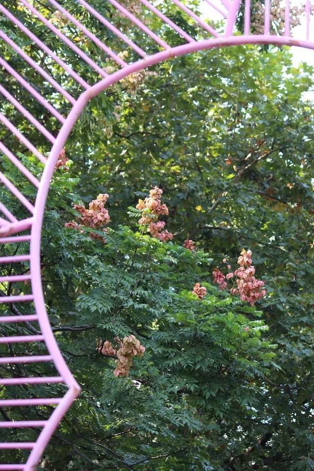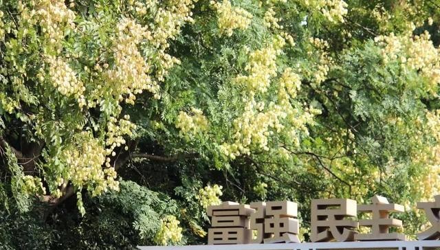 “大树下,破碎的阳光星星点点,风把遍地的小灯笼吹得滚动,仿佛喑哑地响着无数小铃铛。”栾树就是一场盛大的秋天,栾树的花语是奇妙、震撼、绚烂的一生,初夏开花,一树金黄,初秋结果,一树浪漫,它的一半站在夏天,一半站在秋天,半树葱茏半树秋,栾树是名副其实的多彩秋日“代言人”。