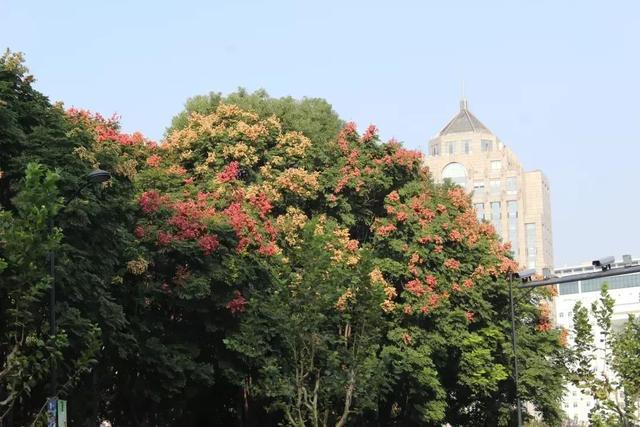 栾树碎金黄花,红黄蒴果。一层青绿,一层鹅黄,一层红褐,绚丽多彩层次分明。金外滩集团下属人民公园公司养护管理的人民公园、人民广场中心区域、古城公园B2绿地、蓬莱公园及周边的栾树已挂上了那粉嫩的“小灯笼”,都在庆祝这秋季丰收日的到来。