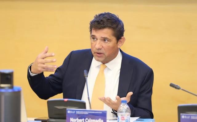 匈牙利约翰·冯·诺依曼大学校长、匈牙利经济部前国务秘书奇兹马迪亚(Attila Norbert Csizmadia)发表主旨发言。他表示,地理学和政治学一样,是思考地缘政治议题的重要视角。欧洲在理解“一带一路”倡议时,应结合地理的角度,摆脱传统的欧洲中心主义桎梏,尝试将不同主体放到地图中心,结合多个经济指标进行多角度的理解。他认为,亚洲过去一段时间为世界经济发展作出了巨大贡献,世界经济发展的未来在亚洲。