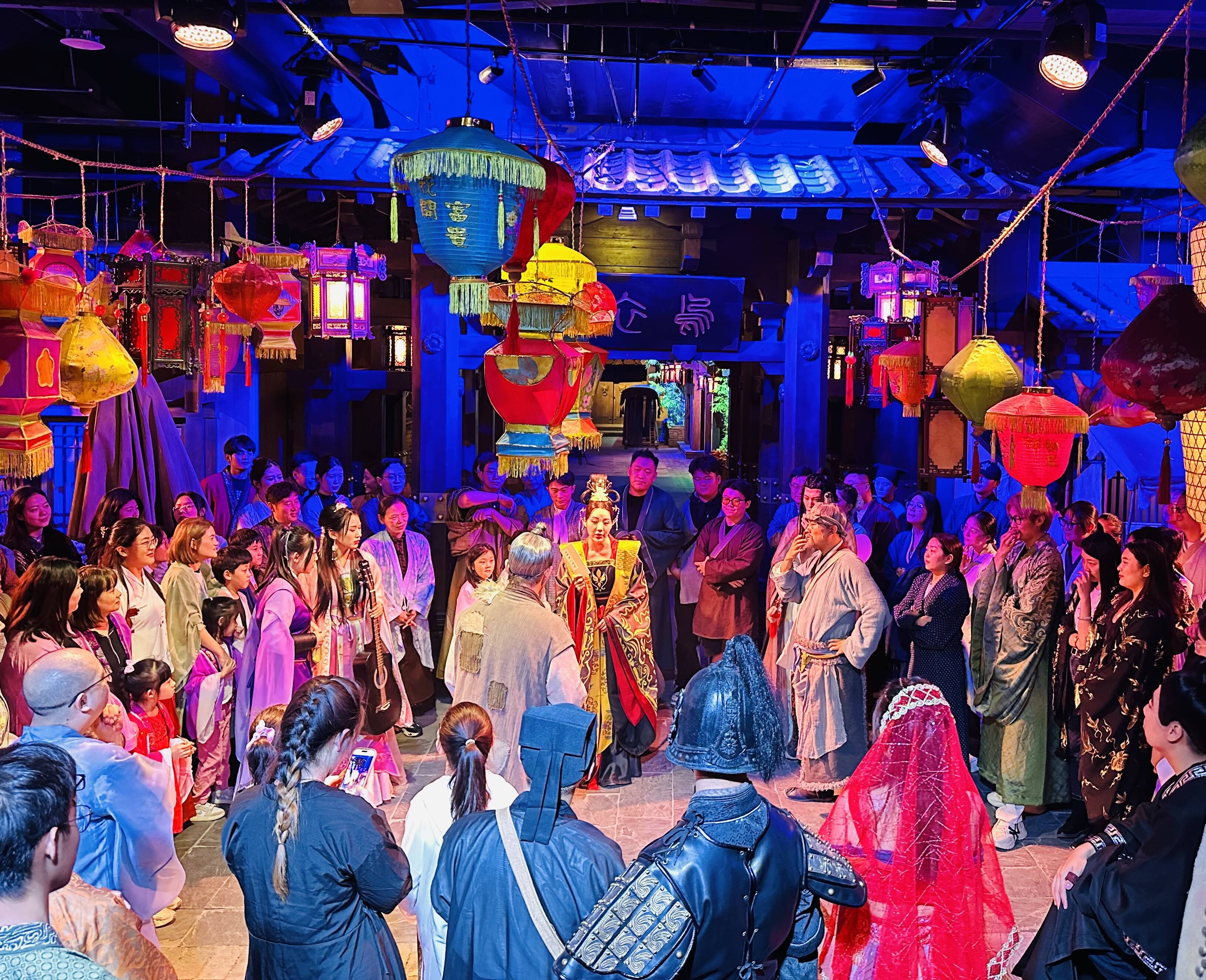 “沉浸式游戏剧场是最近兴起的一种全新表演形式,将戏剧与游戏互动体验进行完美结合,是山东探索旅游演艺新业态的一种尝试,游客不再是戏的旁观者,而是换装后成为剧中的角色参与其中。”据山东演艺集团党委副书记、副董事长、总经理解东介绍,《琅琊风云》的策划主旨就是讲好琅琊故事,延续历史文脉,坚定文化自信,以沉浸式游戏剧的形式将魏晋时期的朝野风云囊括其中。戏剧化的参与体验,实现了舞台、游客、演员三者的融合,全方位提升了游客的参与感。