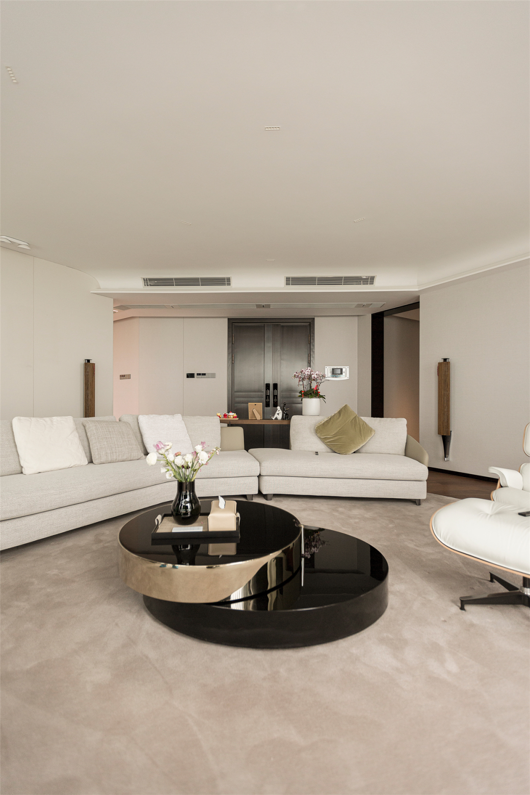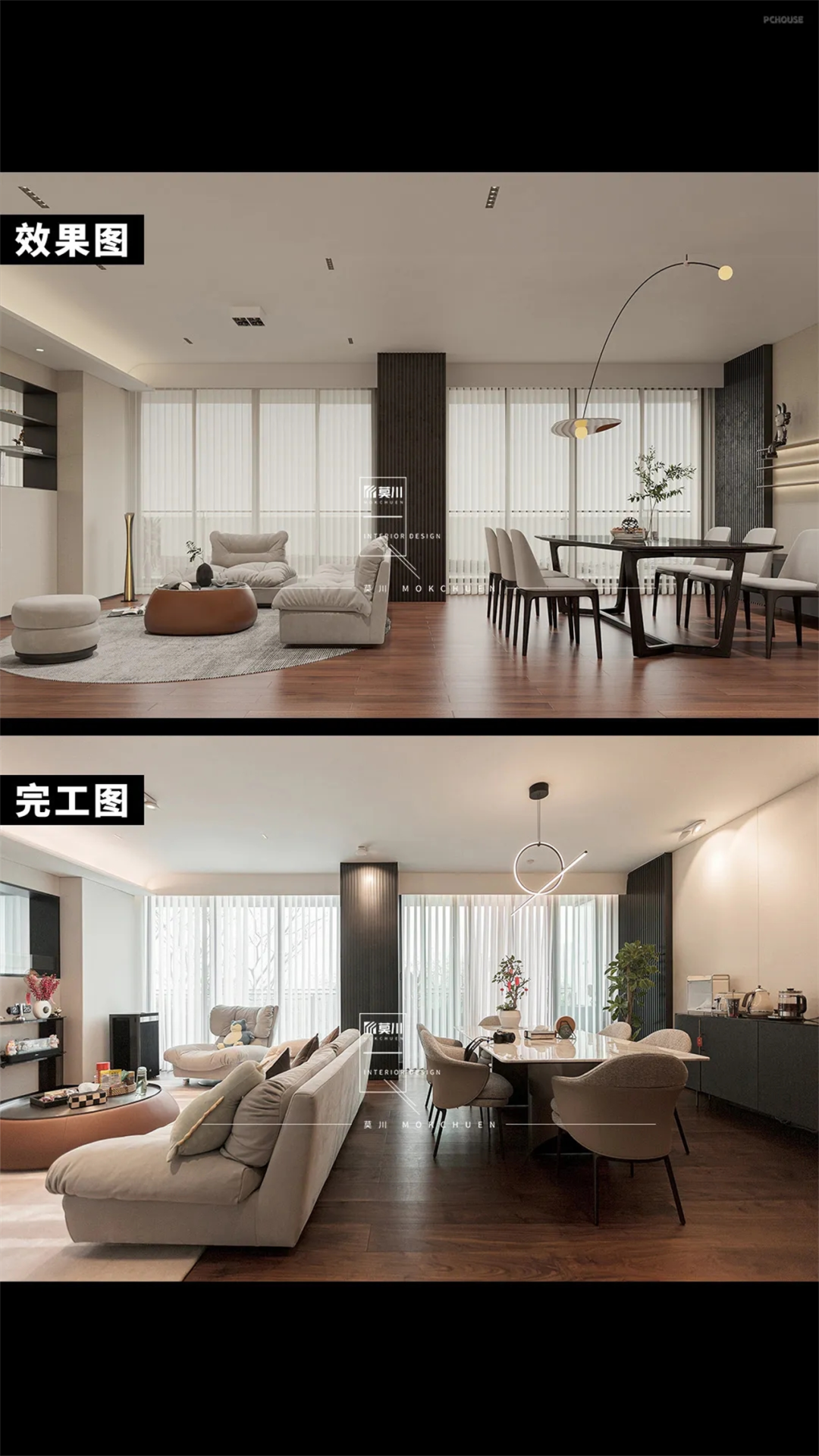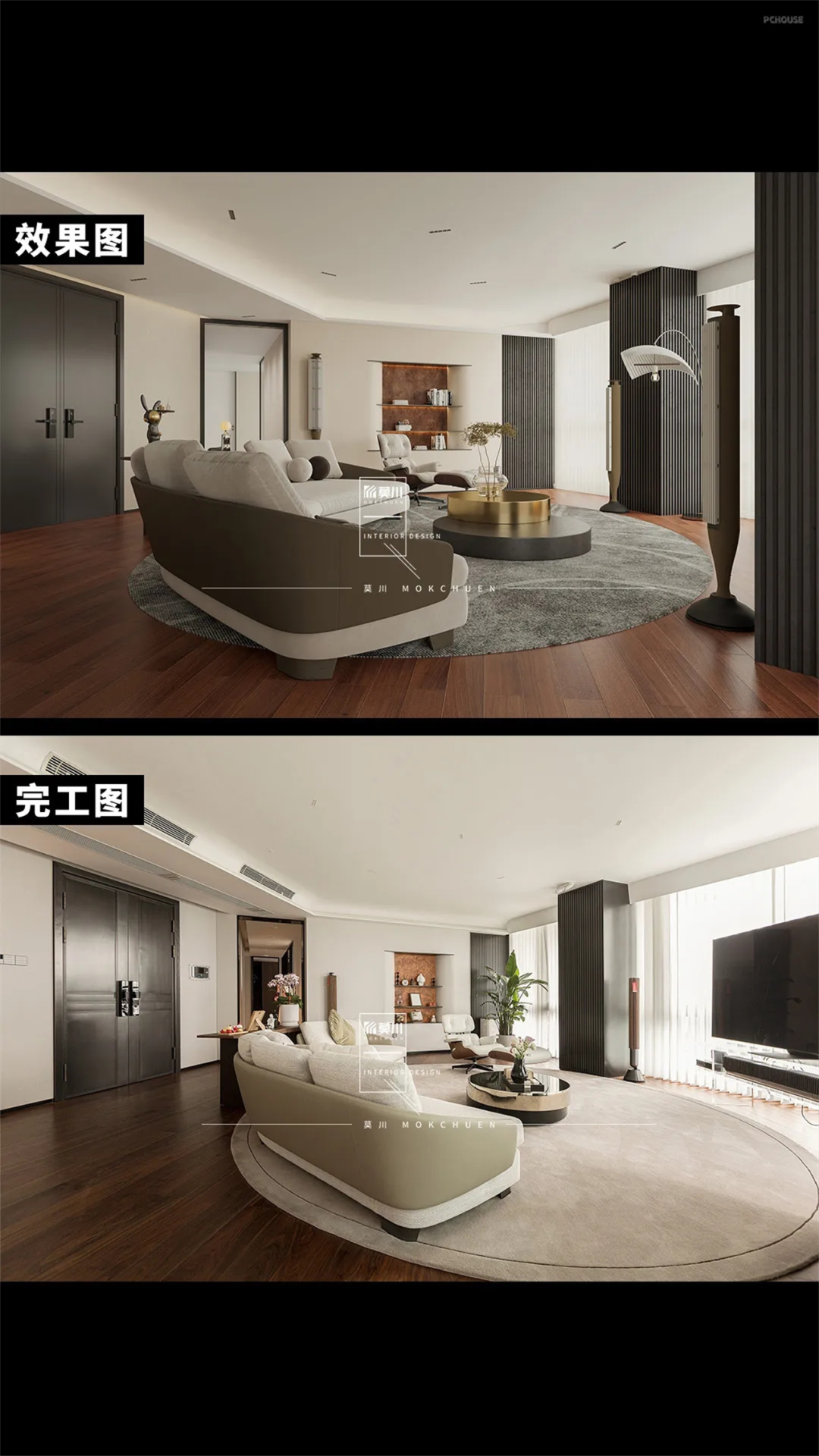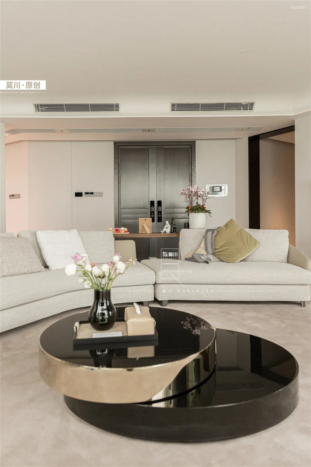 这次带来的是由莫川建筑空间设计改造的异形格局325m²超大平层。原始户型空间昏暗,且硬装颜色偏深,卧室布局动线复杂,走廊狭长且无光。针对户型问题,设计师通过改善硬装色彩,利用灯光和软装家私等提升空间明亮度,针对静区空间进行重新布局,调整尺寸比例,改善不适用情况,以此来满足屋主想要一个明亮舒适家的心愿。