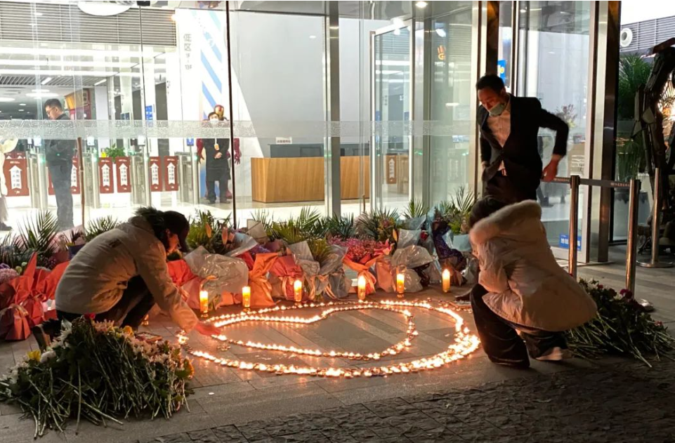 林奇去世后,他生前打拼下的游族大楼门口,很多人拿着鲜花来凭吊他。
