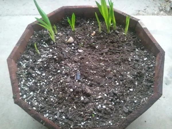 在栽种的时候,就可以先在容器里添加1/3左右的土壤,之后就可以将香雪兰的种球芽眼朝上种下去。香雪兰的种球一边是比较平的,另一边是尖的,比较尖的那一面朝上栽培。