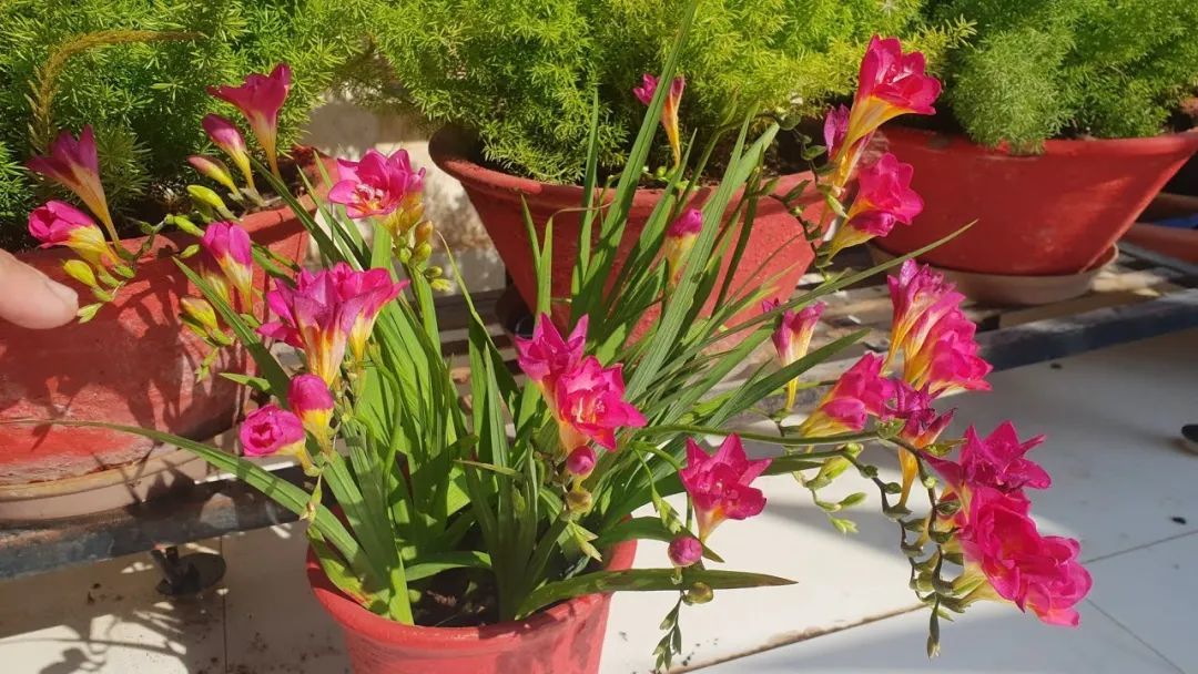 到了秋季又可以重新浇透水,放在阳光充足的位置又可以重新生长,香雪兰盆栽长的子球太多时,就是要进行分株繁殖了。