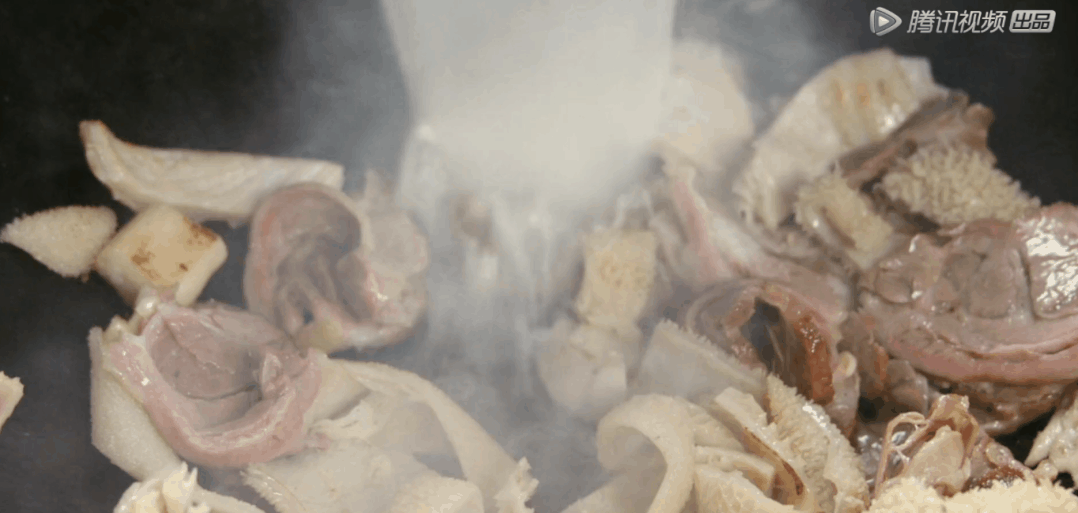 做汤之前,会将熬煮好的羊货爆炒,炒后再加入熬好的羊骨汤,进而做成一锅羊汤。这种特殊的油爆工艺,更增添羊肉的香气。