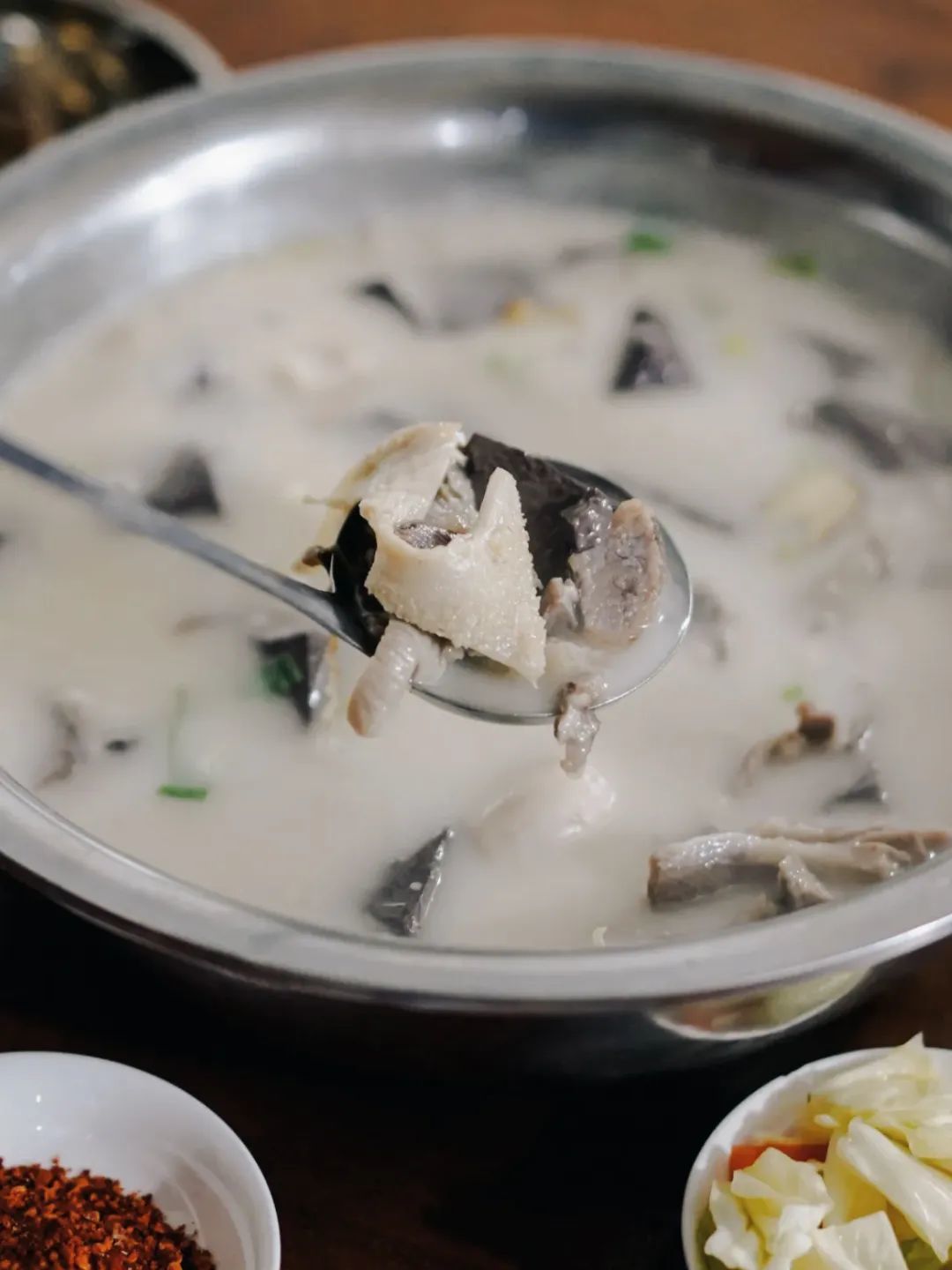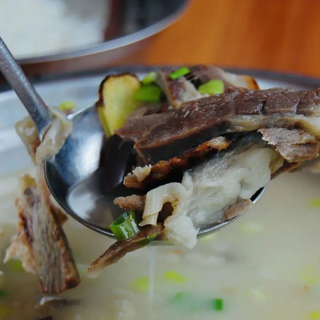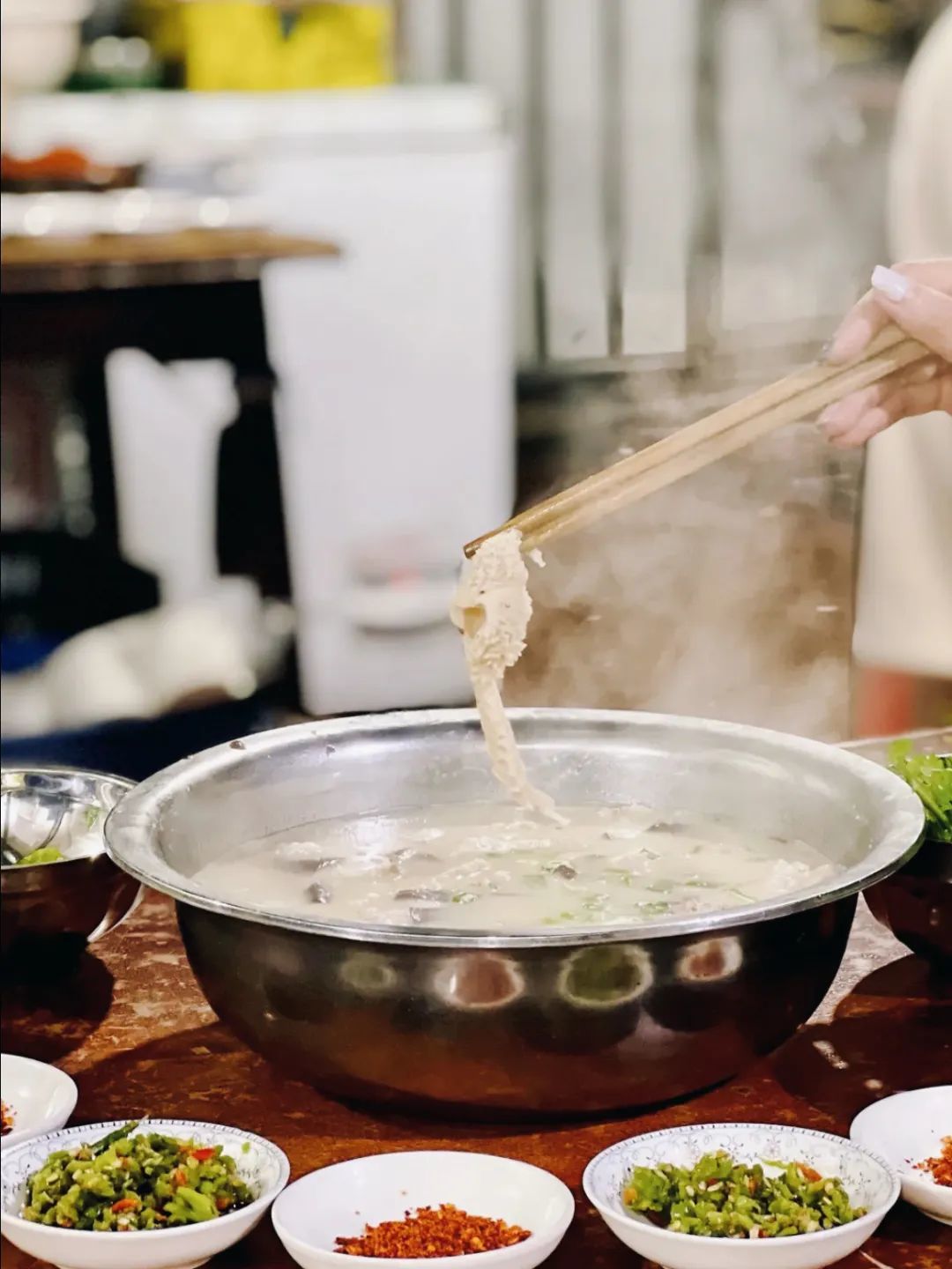 鲜嫩的羊肉搭配奶白的汤底,在锅中咕嘟咕嘟起起伏伏。夹起一筷子,肉质细腻鲜美,再喝口汤,直接把眉毛鲜掉,口感温润而治愈。
