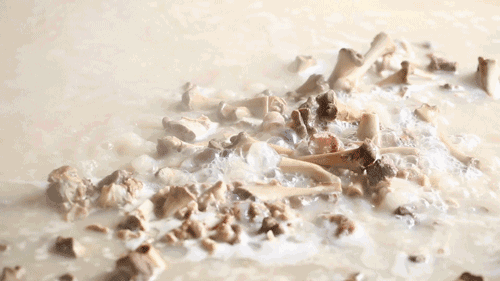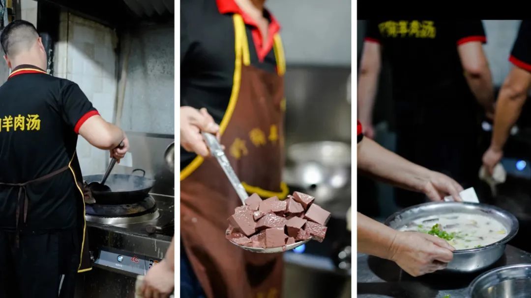 羊汤的制作工序很是讲究:下午杀羊,先放置一晚,第二天清早剖解卸肉,羊肉和羊骨要分别用清水浸泡10小时。