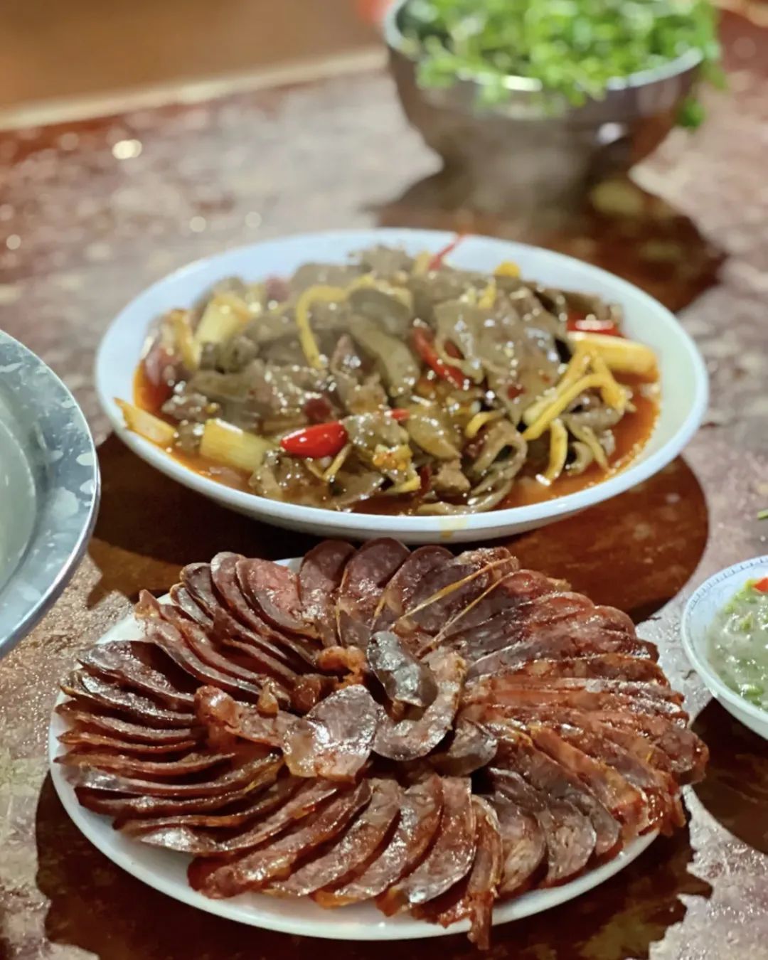 碗豆汤是必点。肥肠经过长时间的慢炖,已经与豌豆的香气完美结合。入口汤汁浓稠,略带朴实的豌豆香,趁热喝下,温润治愈感油然而生。