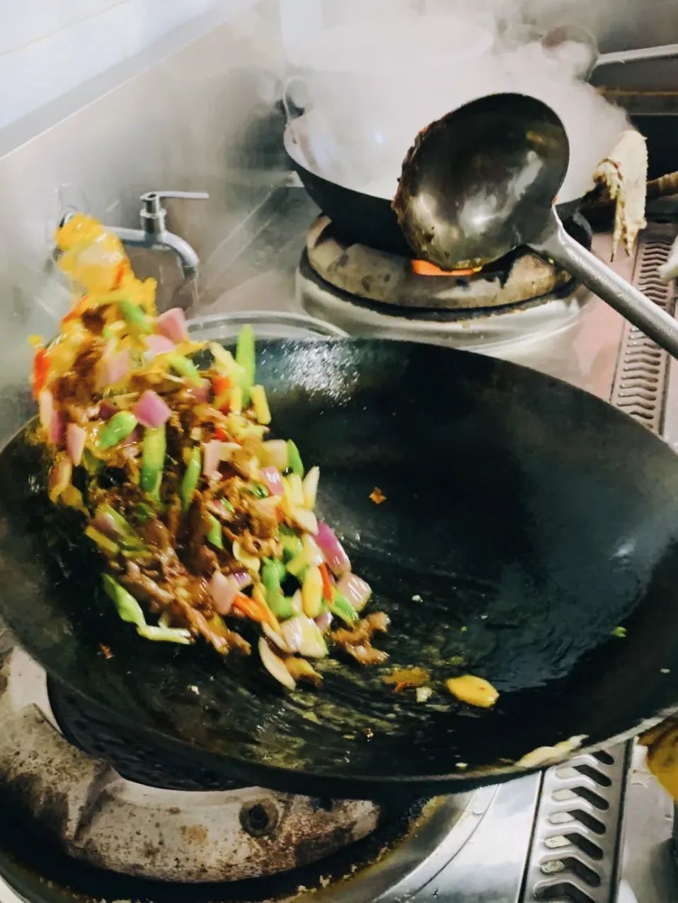 有肉有汤,再来碗米饭,温润而舒适。再丰盛些,可以来两盘馆子里的拿手小炒;爆炒羊肝猛火快炒,虽是家常调味,但却镬气满满。
