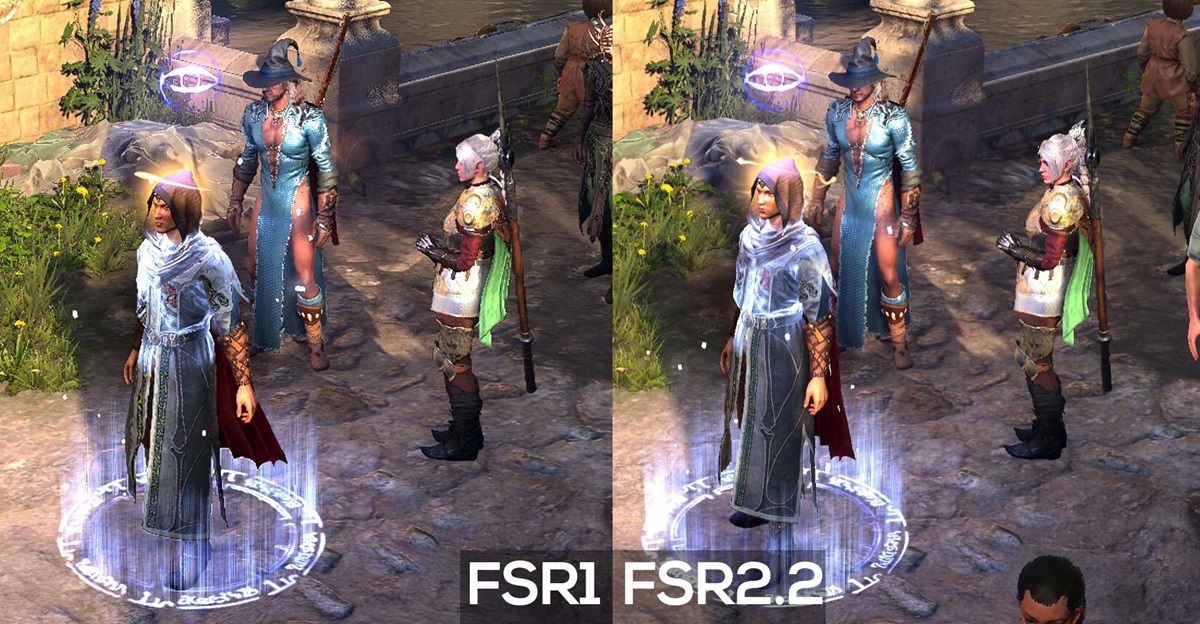 图:《博德之门3》中FSR 1.0和FSR 2.2对比,来自PCGamer