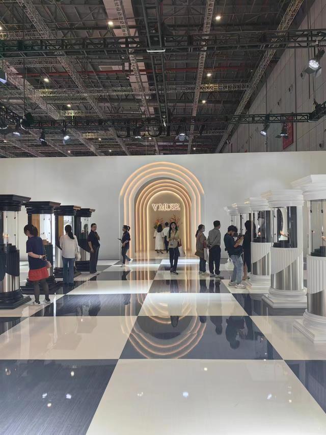 樊晓光介绍,今年,V MUSE的展区一举扩大至500平方米,以国际象棋为灵感,展厅地面被设计成黑白两色的棋盘,珠宝柜也是国际象棋棋子的样式,9顶珍贵冠冕构成璀璨夺目的核心展区,每一顶冠冕都出自国家珠宝大师之手,以独特视角,传承跨越时空的记忆。