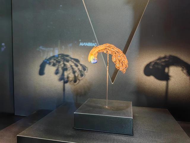 本届进博会文物艺术品板块,观众仿佛置身美术馆,欣赏一场美轮美奂的艺术盛宴。顶级珠宝品牌V MUSE今年二度参展,带来了这件孔雀羽饰、拿破仑金叶子、冠冕等一系列明星展品。