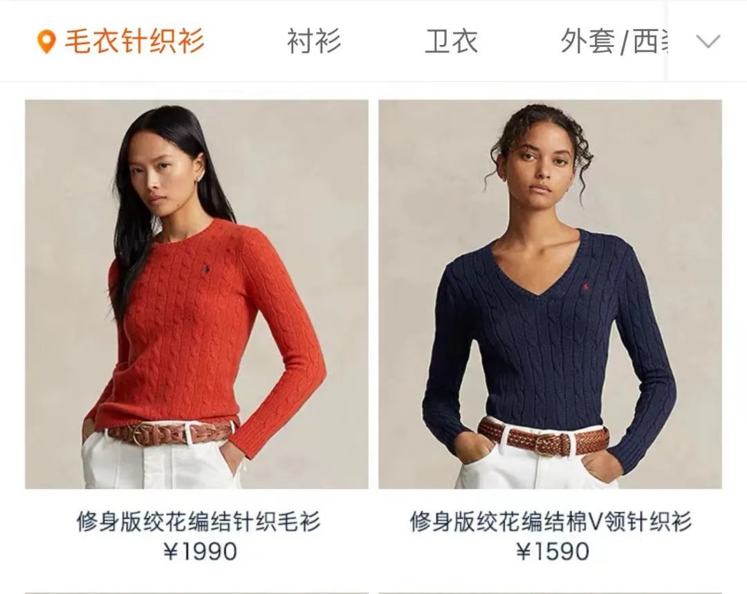 打开某宝的拉夫劳伦官方店铺,想要购买一件经典的绞花纹毛衣,需要1590-2290元不等。