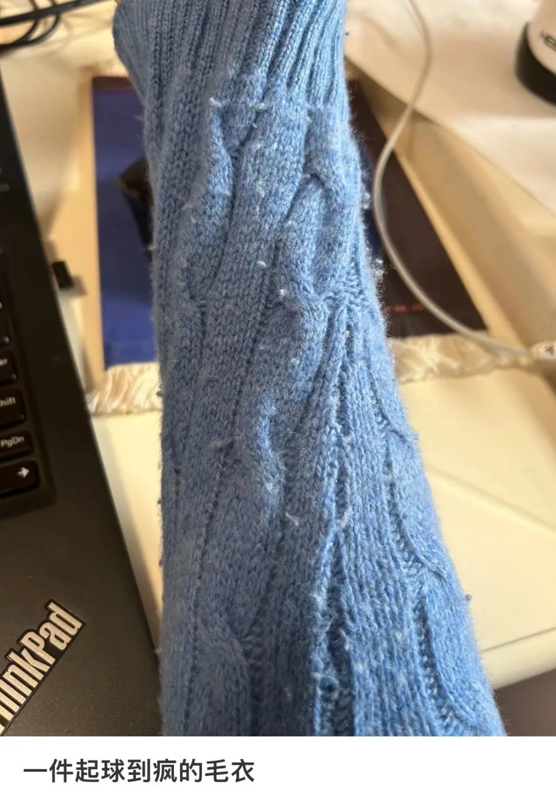 穿拉夫劳伦的第二天,网友就收获了两条满是毛球的袖子。