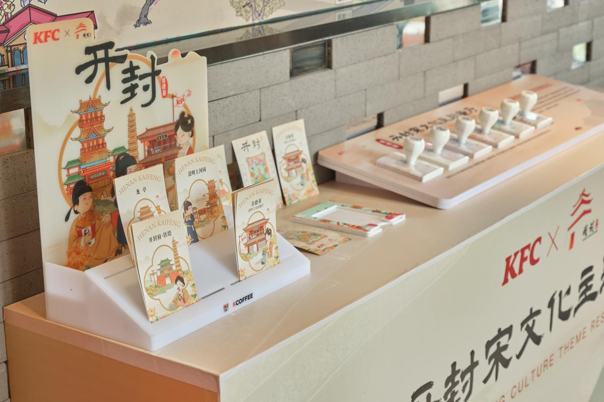 餐厅在一楼前台旁专门设置了开封文旅“宋文化特色印章”打卡点以及4款河南肯德基手绘风明信片,供顾客和市民领取并盖章体验。这套印章、明信片设计以开封标志性名胜古迹为主,如龙亭、开封府、铁塔等,配以开封州桥及附近汴河遗址当中汴河两岸石壁上的海马和祥云纹样,十分精美,印章采用国家级非物质文化遗产“朱仙镇木版年画”的套印技艺和原理制作而成,一经推出吸引了众多顾客排队体验、打卡。