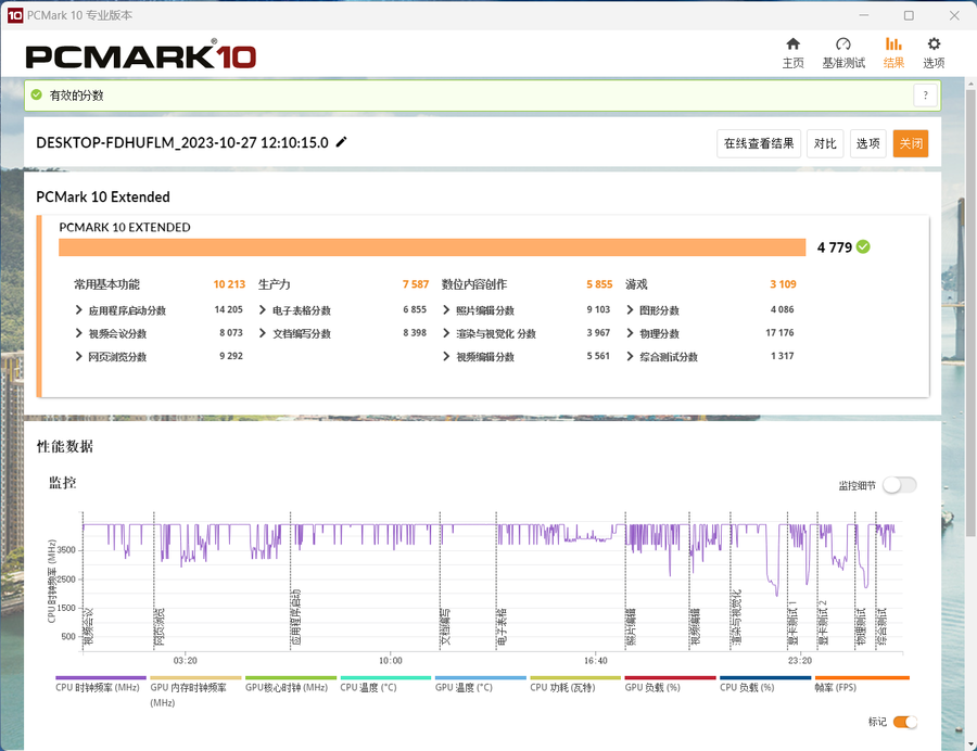 利用PCMARK 10,再来测试下这款迷你台式主机的综合性能。从测试结果来看,作为一款主打轻办公轻娱乐的机型,宏碁蜂鸟M迷你台式主机在常用基本功能表现很好,在生产力、数字内容创造方面表现较好。