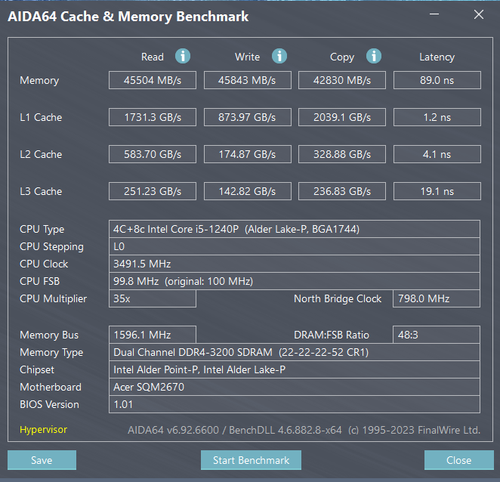 在CrossMark这款生产力基准测试当中,宏碁蜂鸟M迷你台式主机的总成绩为1525分。放在2023年来看,这款12代酷睿处理器应对大量日常轻办公需求依旧能够很好地胜任。