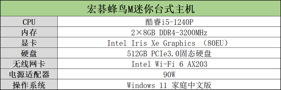 基于酷睿i5-1240P设计的“小盒子”,这就是宏碁蜂鸟M迷你台式主机的产品标签。同时,与很多迷你台式主机一样,宏碁蜂鸟M迷你台式主机也提供多种存储配置可选。笔者此次这款评测机为16+512GB存储版本。