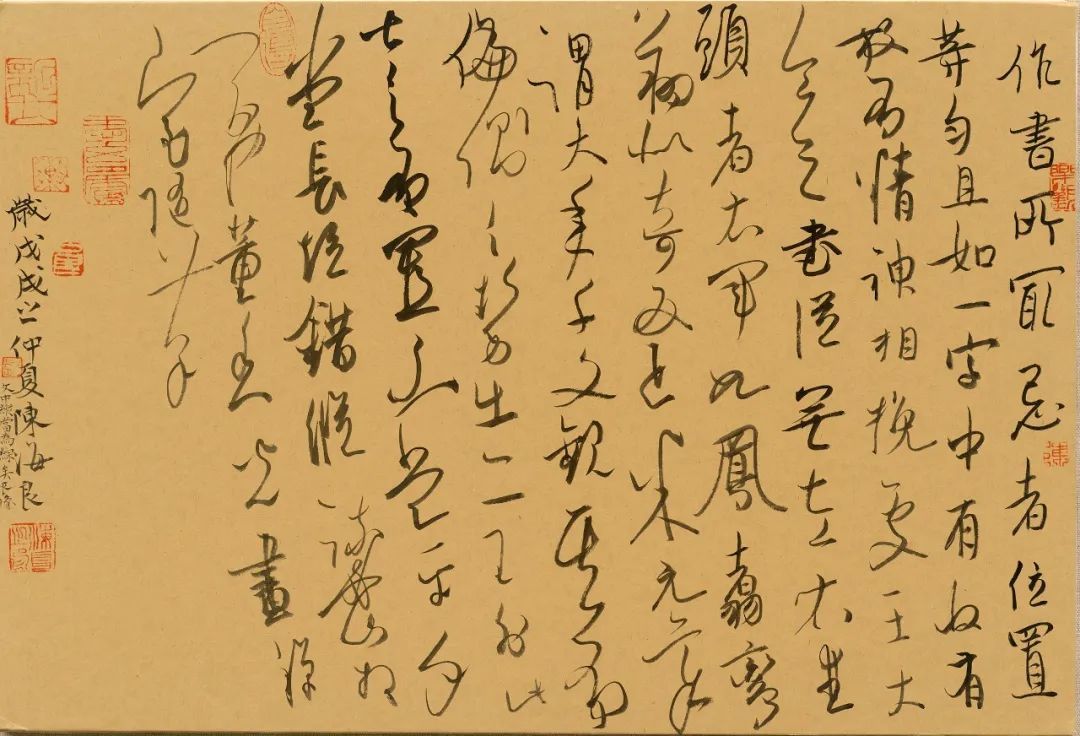 于是,我展开对草书的固本寻根之路,发愤于楷、隶、用心于篆、籀,以至于马士达先生常常误解我意,总是谆谆告诫:“陈海良,你是写草书的!”如今,先生已成故人,然“劝言”依然铭记。不过,通过对草书相关书体的理解、实践和融通,我的草书世界终于积累了些基本家底。