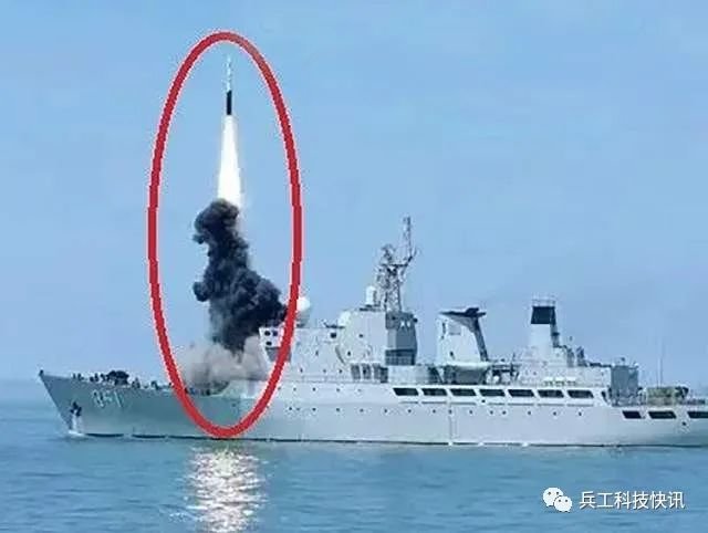 “毕昇”号试验舰垂直发射某型导弹图
