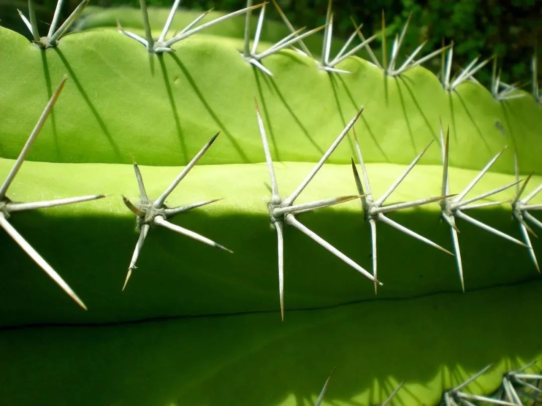 大家都知道仙人掌是没有叶子的,其实这些叶子就是被这些尖刺代替了,大部分人都会认为,这是为了避免被其他动物吃掉,其实仙人掌的刺还可以给它提供适当的遮阴,还能调节温度,减少水分的损耗,有仙人掌的品种还用这些尖刺来繁衍传播。
