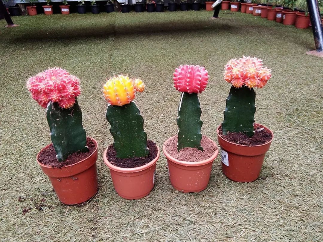 上面这些是嫁接在量天尺上的绯牡丹,这些绯牡丹光合作用的特性极弱,本身无法进行光合作用,所以嫁接在其他仙人掌上才好生长。