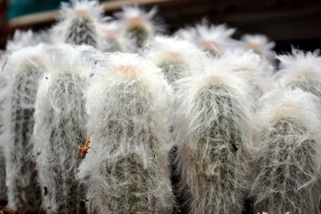 尽管我们看到的仙人掌的尖刺是特别细小的,平常我们还看到过一些长满毛的仙人掌,就是茎上覆盖了一层白色的绒毛,像是给仙人掌盖上一层棉花,包括常见的玉翁、老乐柱、白雪光和猴尾柱等,其实就是为了调节仙人掌整个植株的温度。