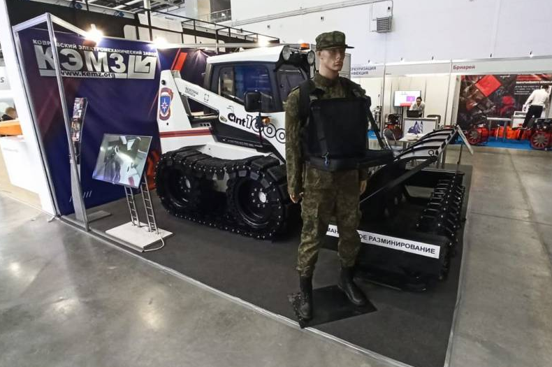 ▲MGR-4“赤眼蜂(Shmel)”人道主义排雷机器人在俄罗斯2023年军事论坛上展示,旨在探测和消除杀伤人员地雷