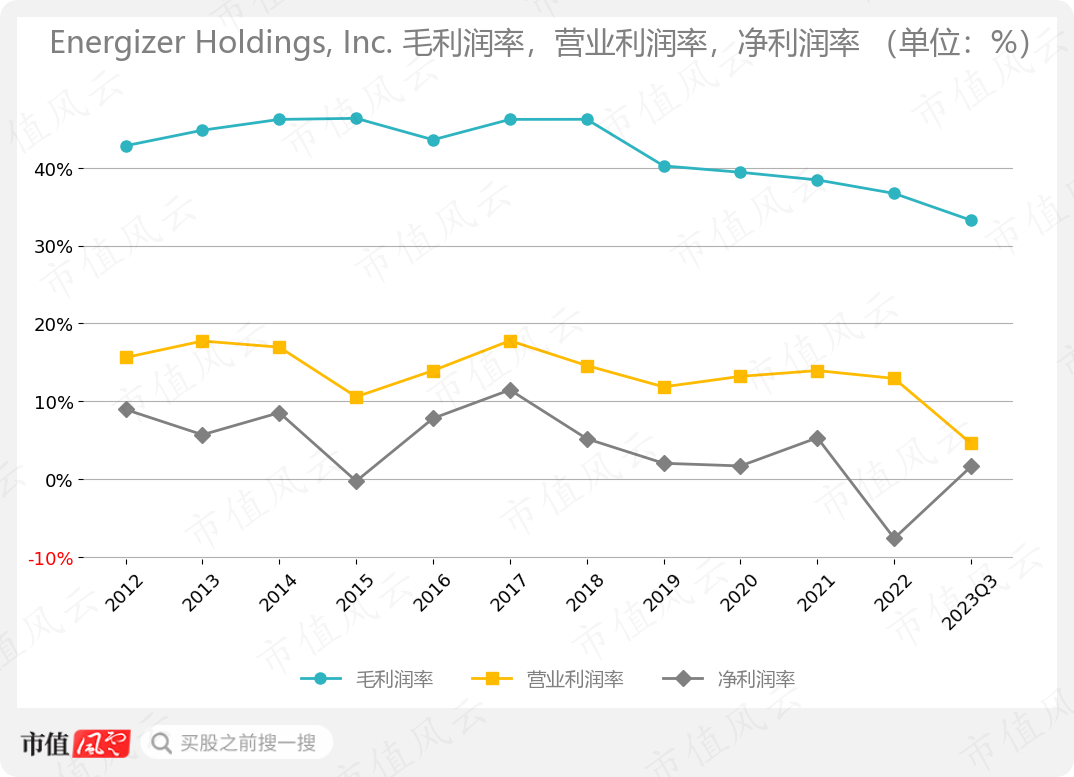 由于上述挑战,加上近两年的北美通胀,劲量的盈利能力明显下滑。截至2023年Q3,公司的毛利润率、营业利润率、净利润率分别为33.25%、4.59%、1.63%。