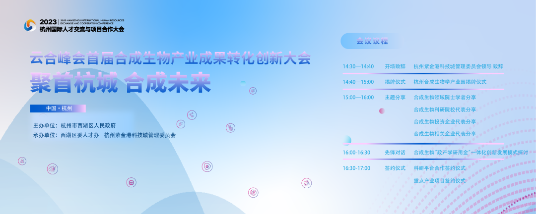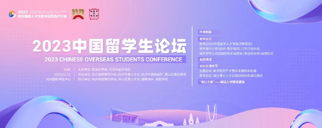 大会由中共浙江省委、浙江省人民政府、欧美同学会(中国留学人员联谊会)主办,浙江省委组织部、浙江省人力资源和社会保障厅、杭州市委、杭州市人民政府承办。大会将以习近平总书记关于做好新时代人才工作的重要思想和考察浙江重要讲话精神为指导,以“开放合作 创新创业”为主题,围绕高质量发展,借势亚运盛会,广泛吸引全球青年人才,充分体现科技创新塑造发展新优势,切实助力打造创新创业新天堂。重点突出五方面特点: