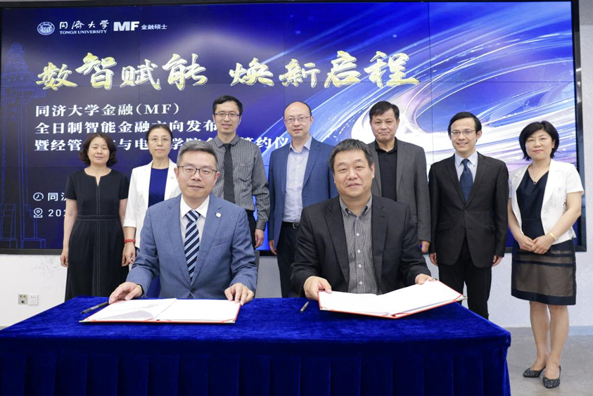 5月29日,同济大学经济与管理学院与电子与信息工程学院合作签约仪式于同济大厦A楼圆满举行。同济经管与电信学院通过优势学科交叉,培养具有跨界创新能力的“人工智能+”复合型精英人才。签约仪式后进行了金融硕士(MF)全日制智能金融方向项目发布会。此次联合培养智能金融人才是两院合作的起点,未来将拓展到人才培养的更多环节,不断加强学科融合与交叉合作。