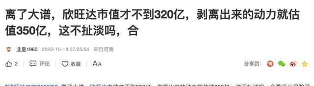 有股民表示,“离了大谱,欣旺达市值才不到320亿,剥离出来的动力就估值350亿,这不扯淡吗,合着母公司除了动力其他全都是负债呗。”“300亿的公司,拆出来估值300多亿,中信全程辅导上市,厉害厉害。零元购一条龙。”