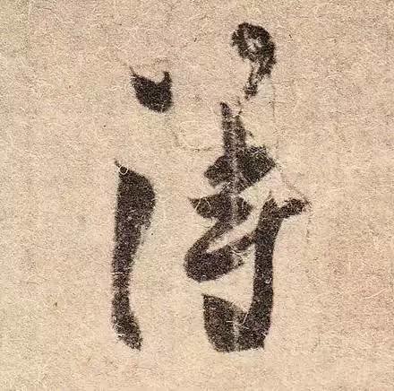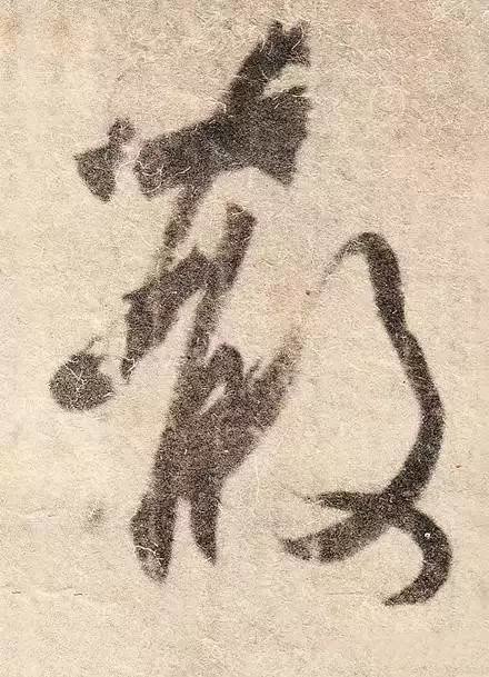 从第一行的首字“得”来看“寸”的横画是从上一笔的横带出来的,所以在此时笔锋还没有完全调整到理想的状态,随着笔锋的向前推移,到横画的中间部分 ,可以明显地看到由粗到细的变化。至此笔锋才完全调到中锋的状态,这种调锋用笔方式是王羲之的首创。到后来就演变成书家表现笔法的一个重要手段了。