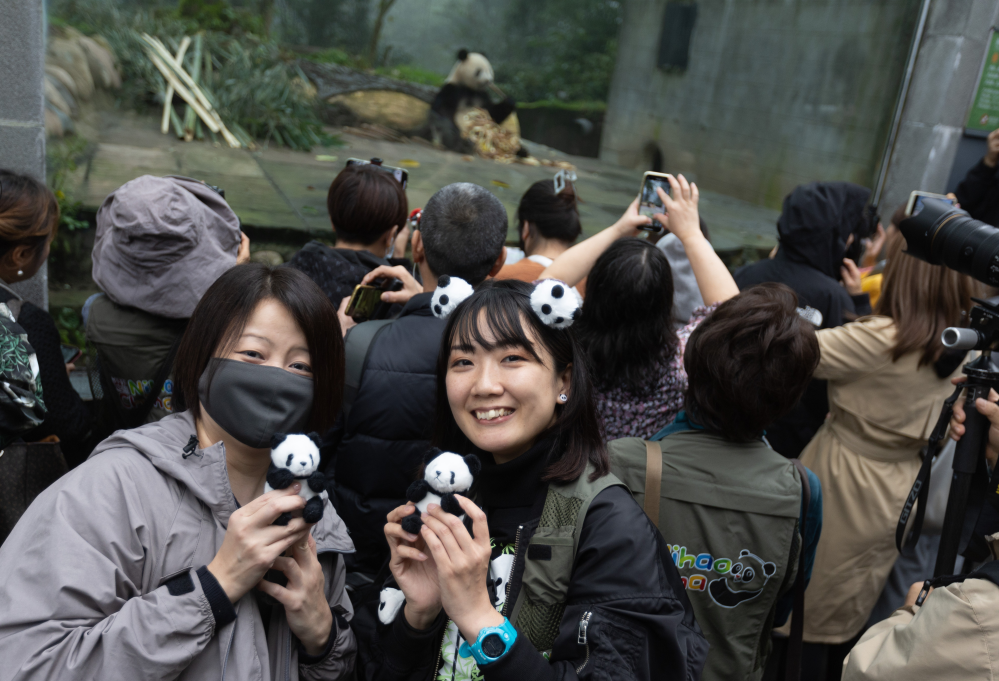 四川雅安碧峰峡,日本大熊猫摄影师高氏贵博在人群中踮起脚尖,和一同来探望“香香”的日本粉丝们等待着。当娇憨的“香香”现身林间时,他高举相机、按下快门,成就他拍摄大熊猫的3371天。