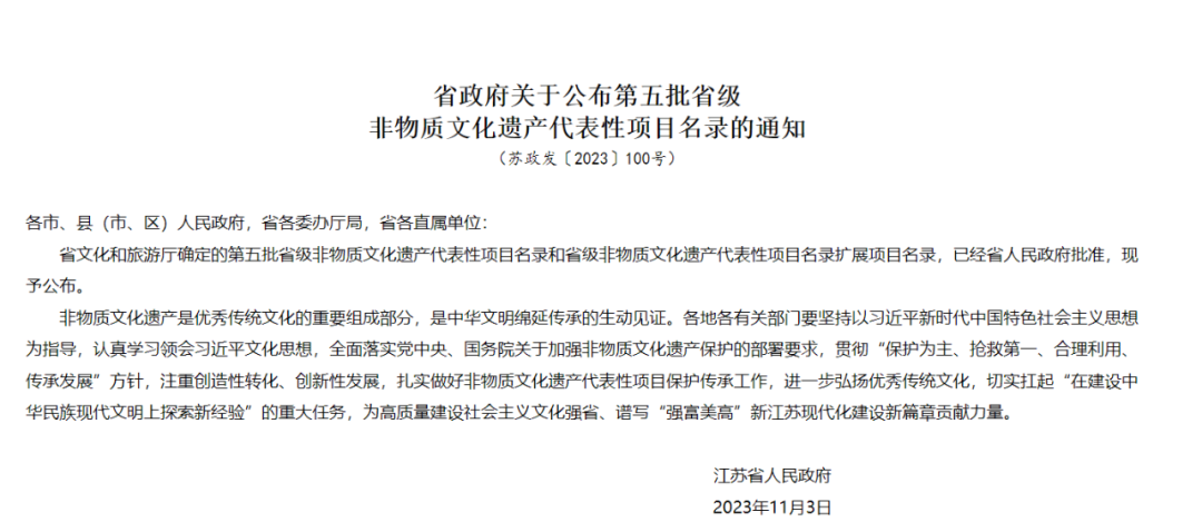 非物质文化遗产是优秀传统文化的重要组成部分,是中华文明绵延传承的生动见证。去年下半年,江苏省文化和旅游厅正式启动开展第五批省级非遗项目评定工作。徐州市文旅主管部门积极组织专家对具备条件的市级非遗项目进行遴选、论证和推荐。经基层推荐、材料审核、专家评审、相关会议审议和社会公示等程序后,江苏省文旅厅确定推荐入选第五批省级非遗代表性项目名录。