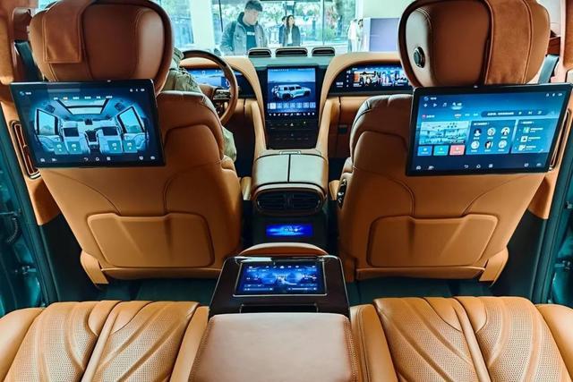 智能化配置方面,仰望U8也是做到了极致,提供了23.6英寸液晶仪表盘、12.8英寸OLED曲面屏、23.6英寸副驾娱乐屏以及70英寸AR-HUD。此外后排同样配备了两块12.8英寸液晶屏。