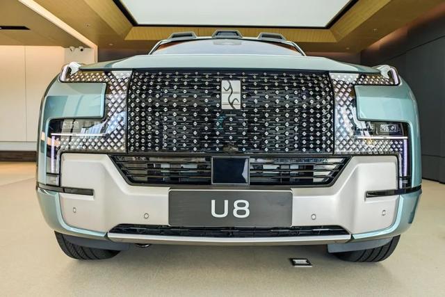 仰望U8采用了“时空之门”设计语言,大尺寸的进气格栅内部为镀铬点阵式设计,两侧的灯组也与格栅融为一体。看上去非常大气稳重、器宇轩昂,同时还带有不错的豪华精致感。底部则配有厚重的护板,也彰显出其硬派越野实力。