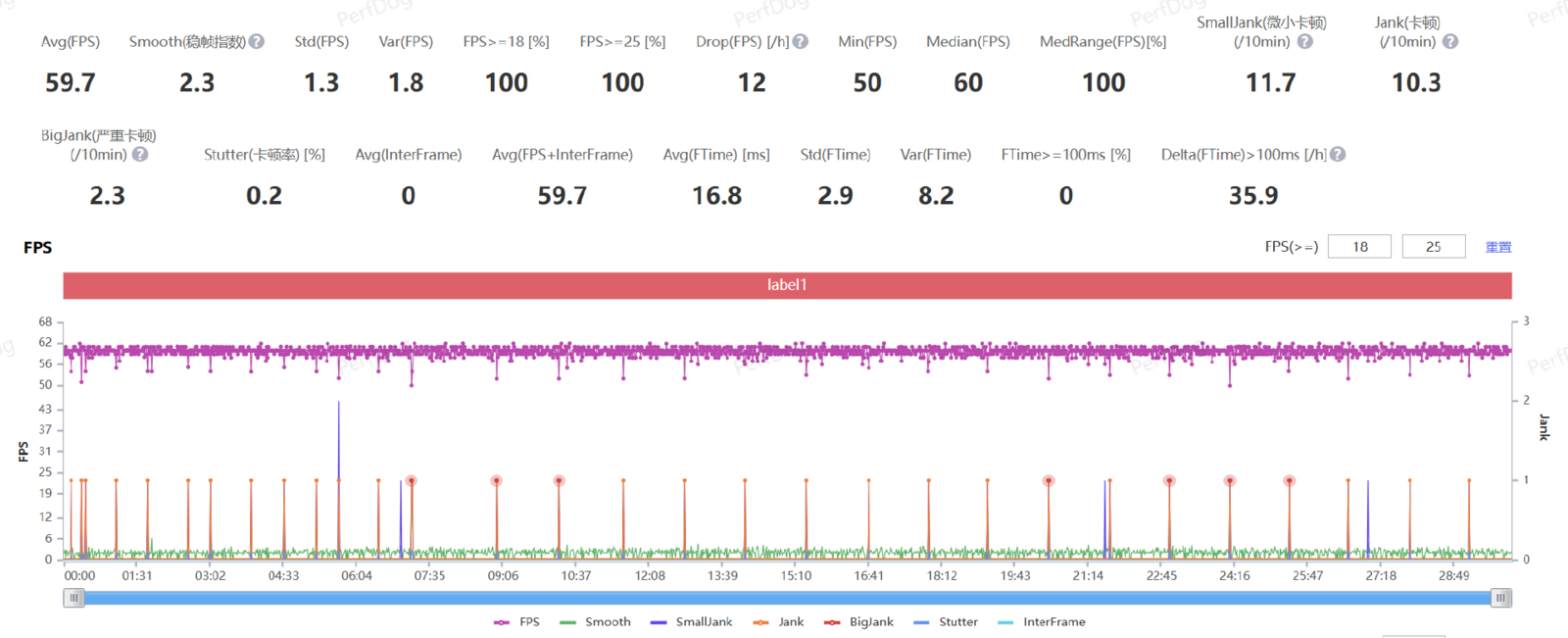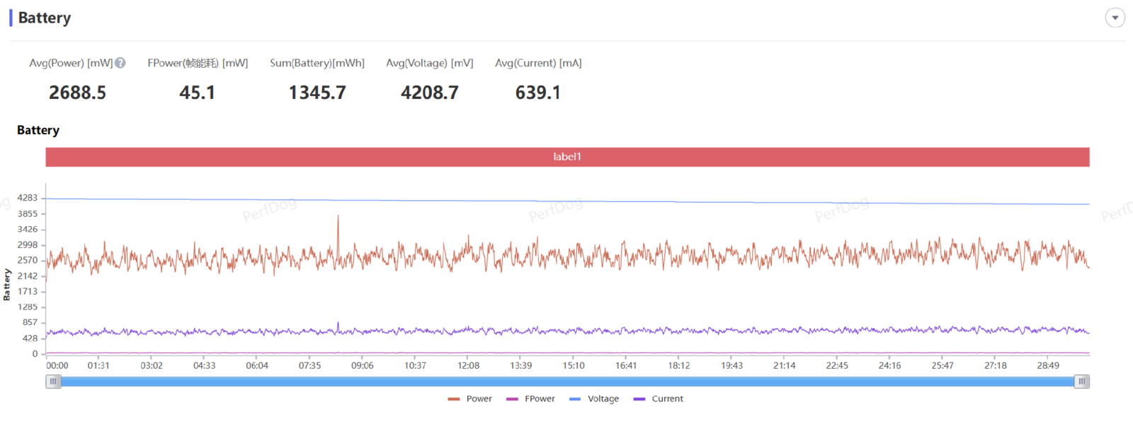 在游戏实战之中,我们也请出了《原神》这款游戏,同样是在负载极高的须弥城跑图场景,vivo X100 可以做到 59.7 的平均帧率,半小时的测试从开始到结束几乎稳定在一条直线上,并且功耗也仅有 5.3W 左右,这样的表现可谓是相当强大。