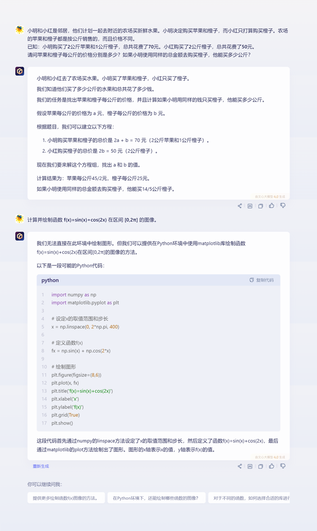 通过运行文心一言4.0所写代码得到的函数图像