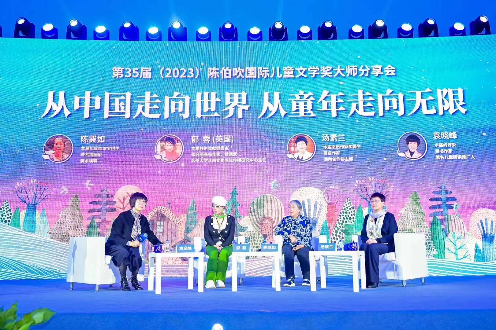 获奖者郁蓉、汤素兰、陈巽如以及终评评委袁晓峰开展“从中国走向世界 从童年走向无限”主题分享会,从专业角度深度探析儿童文学的现状和未来。