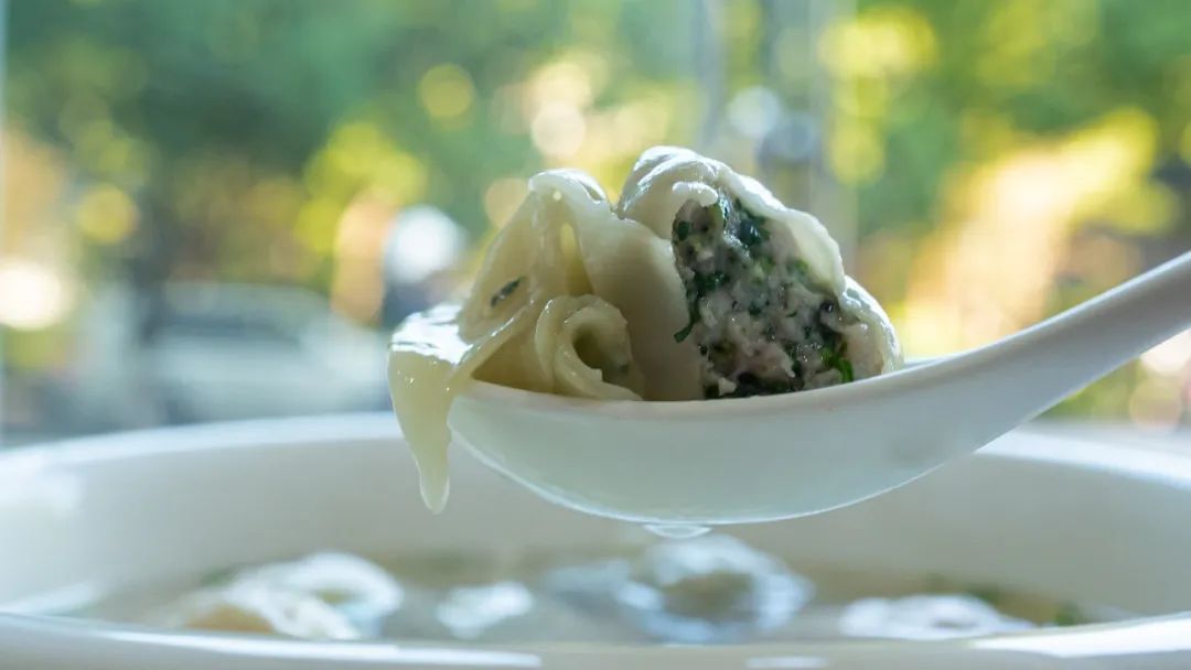 马兰头鲜肉馄饨,馄饨是店家现包现做,味道很鲜美,肉质弹嫩,很扎实。马兰头的清鲜滋味如沐春风一般。