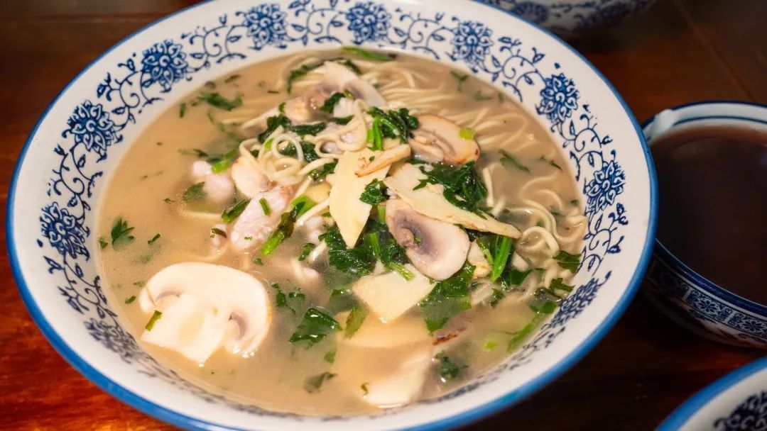 黑猪时笋片儿川,片儿川这个词外地人可能不理解其中的意思,我解释一下,片是片状,一般指肉片和笋片。儿是融入了北方的儿化音。川既是汆,作为动词,川又是像面条一样的象形文字,生动活泼很形象。