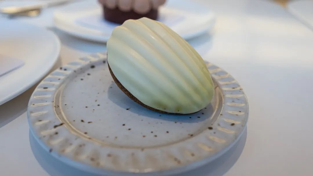 抹茶柚子玛德琳,柚子巧克力用的是法芙娜灵感巧克力,贝壳上的光泽度很漂亮。酸度偏高,玛德琳的松软湿润,舌头经过柚子巧克力的酸口腔分泌更多水分。也许是一款在将来能像普鲁斯特在《追忆似水年华》里回忆起玛德琳的感受。