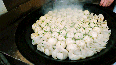 本地接地气美食早餐,价格非常亲民,一只煎包或是煎饺只要一元。