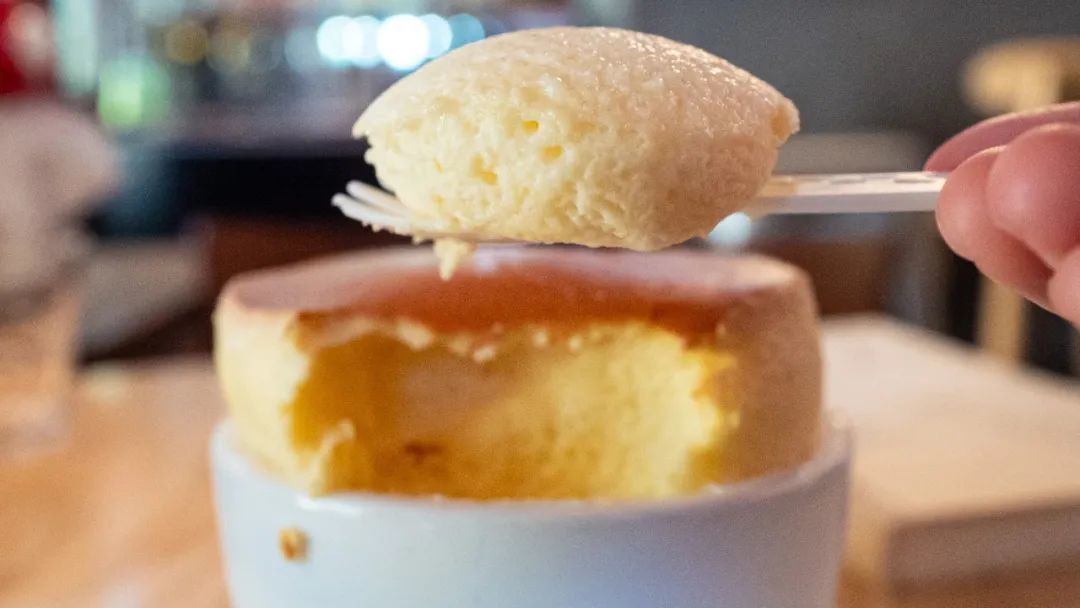 吃口有空气感,放在在嘴里化开,如果你小时候也想象过吃云朵,那也许这就是吃这款舒芙蕾时带来的感觉了,而这朵黄色的云有微甜焦糖香气,软进了心里。