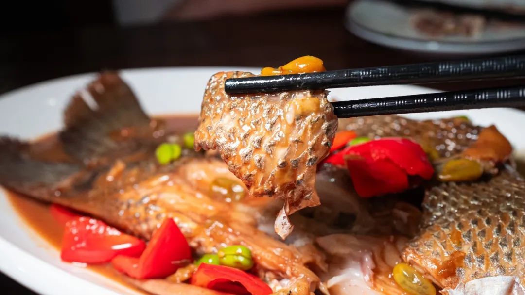 绍兴烧鲈鱼,肉质鲜嫩,是两道臭菜的避难所是温柔乡。老板的新鲜食材是自己跑回绍兴买来,讲究食材的鲜美。