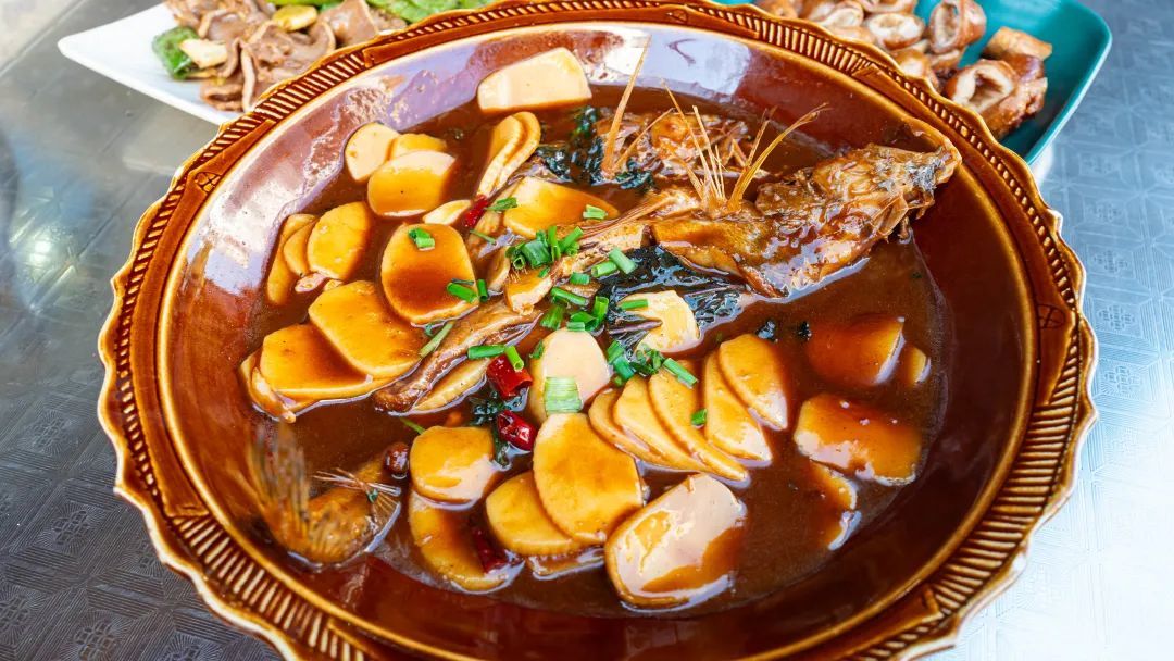 西湖醋鱼,如果非要试试西湖醋鱼的话可以避开草鱼。鱼的选择有很多,除了昂贵的金沙厅,还可以选择接地气一点的餐厅。比如他们家用的是鲻鱼,没有什么土腥味,鱼肉一瓣一瓣,吃口也比较细嫩,作为了解一个地方的历史美食,吃一吃没问题。有很浓稠的芡汁,醋糖姜酱油描绘出蟹味,追求蟹味是当年西湖醋鱼“出圈”的原因。