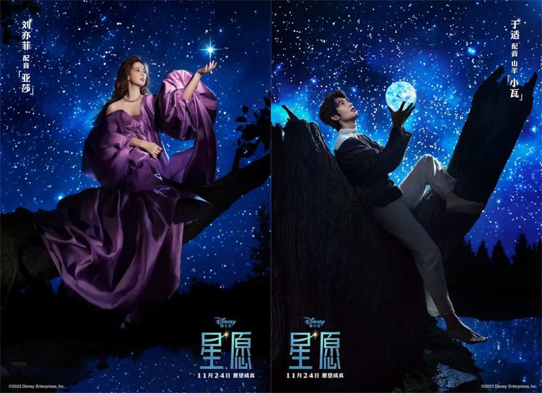 在11月24日上映的迪士尼为纪念100周年推出的动画电影《星愿》中,刘亦菲将为女主角——聪慧勇敢的“亚莎”配音,于适的角色则是古灵精怪的山羊“小瓦”。