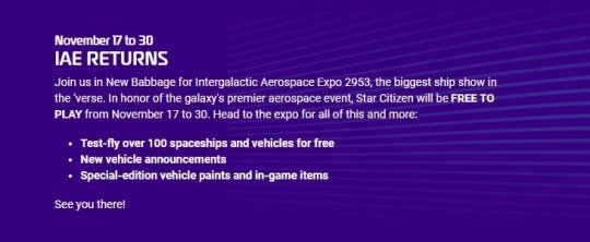 值得关注的是,在2953年星际航空航天博览会期间,开发商还会揭晓更多即将加入游戏的飞船。据悉,2953年是《星际公民》设定中的当前年份,游戏设定中的时间与现实世界同步推进。