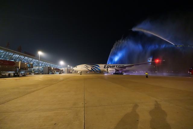 11月16日19时左右,埃及航空MS951航班从埃及首都开罗飞抵上海浦东机场,穿过象征民航最高礼遇的“水门”,标志着上海往返埃及的首条国际直飞航线正式开通,为中非“空中丝绸之路”架起了一条新的空中桥梁。